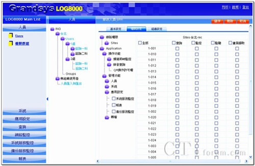 權(quán)限管理設(shè)計(jì),采樹枝狀展開圖之設(shè)計(jì)模式,讓系統(tǒng)管理者可以輕易地掌握目前建立組織(各個(gè)據(jù)點(diǎn))、人員(為值機(jī)員、督導(dǎo)、評(píng)分員或管理者)與不同群組之狀態(tài),設(shè)定多層級(jí)的權(quán)限密碼,增加維護(hù)便利性。