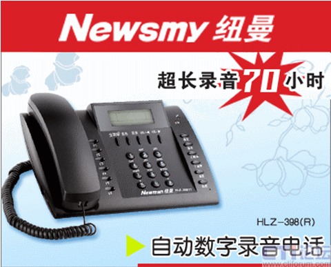 據(jù)紐曼專賣店通訊產(chǎn)品負(fù)責(zé)人介紹,紐曼這次推出的數(shù)字錄音電話之所以能轟動整個通訊市場,最大的原因就是這款錄音電話與傳統(tǒng)的錄音電話有著很本質(zhì)的區(qū)別。傳統(tǒng)的錄音電話要么是通過是磁帶錄音,要么就是需要連接電腦錄音,無法達(dá)到長時間實時錄音的效果。紐曼這次推出的數(shù)字錄音電話最大的特點就是無需連接電腦,插入電話線就可以實時錄音,錄音時長從400小時到1600小時不等,并且支持電腦和本機(jī)兩種查詢方式。