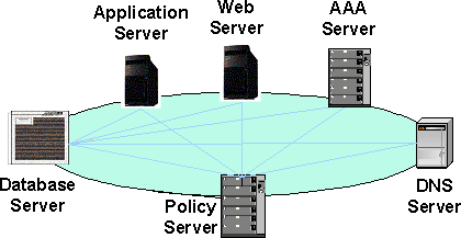 1) 數據庫與Internet分隔開:核心數據庫放在內部局域網;Web Server,AAA Server及Policy通過內部局域網與數據庫進行通訊。