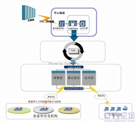 - 如客戶選擇技術(shù)部,則系統(tǒng)將引導(dǎo)客戶進入設(shè)立在本地的技術(shù)支持隊列中,同樣通過呼叫轉(zhuǎn)移接通本地技術(shù)支持部門PSTN電話;