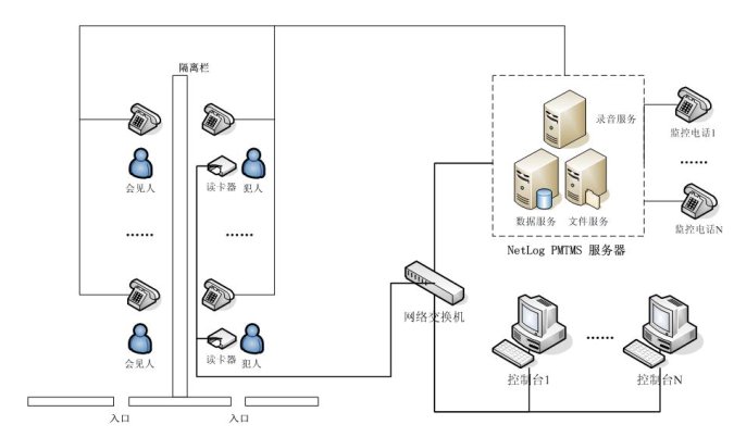 NetLog PMTMS會客室電話管理系統(tǒng)采用基于分布式、多層控制管理體系的設(shè)計思想,將電話線路與內(nèi)部網(wǎng)絡(luò)有效地結(jié)合在一起,形成一套完整管理系統(tǒng),包括會見監(jiān)控、通話錄音、數(shù)據(jù)管理。