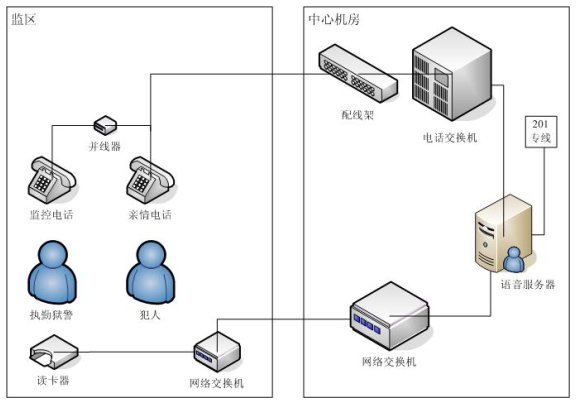 親情電話管理系統(tǒng)在系統(tǒng)設(shè)計中充分考慮監(jiān)獄的需求與特點,不但包含了一般親情電話錄音所需的全部功能,而且還融合了獄政管理的功能,整個系統(tǒng)采用集中式方式,在中心機房部署一套親情電話錄音服務(wù)器,各個監(jiān)區(qū)監(jiān)控系統(tǒng)利用監(jiān)獄內(nèi)部的局域網(wǎng)聯(lián)結(jié)成一個整體,形成一個能監(jiān)控監(jiān)獄親情電話的全網(wǎng)。這樣即可以在每個監(jiān)區(qū)監(jiān)聽,也可以在監(jiān)獄內(nèi)部網(wǎng)的任何地方對親情電話進行全程監(jiān)視。該系統(tǒng)能夠完全滿足目前監(jiān)獄的需求,產(chǎn)品性價比遠遠高于市場上其他同類產(chǎn)品。