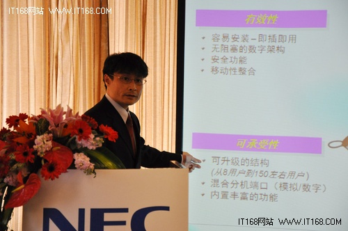 2011年3月28日,國際通信行業(yè)巨頭日本電氣株式會(huì)社(以下簡稱NEC公司)在北京舉辦新品發(fā)布會(huì),宣布最新智能通訊服務(wù)器SL1000正式上市。發(fā)布會(huì)上,NEC公司IT網(wǎng)絡(luò)國際解決方案組平臺(tái)事業(yè)部副總裁橋沢太一郎先生闡述了對未來中國市場的市場策略和遠(yuǎn)景目標(biāo)。