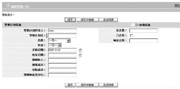 營銷計劃管理功能可以讓用戶跟蹤每個營銷計劃已生成的業(yè)務機會量。當創(chuàng)建業(yè)務機會時,用戶可以在營銷計劃來源字段中填入相關信息,以表明該業(yè)務機會是由營銷計劃生成的,從而檢驗、評定每個營銷計劃的執(zhí)行效率。