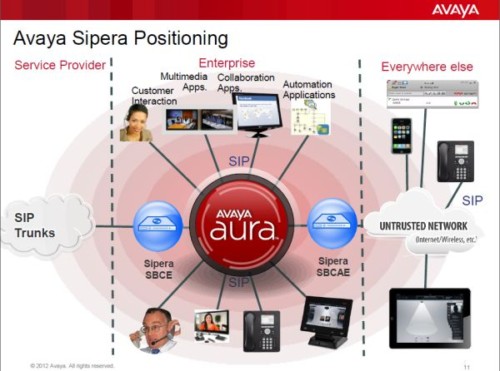 收購Sipera,Avaya獲得了適用于會話啟動協(xié)議(SIP)中繼的企業(yè)級會話邊界控制技術(shù),從而增強(qiáng)Avaya統(tǒng)一通信產(chǎn)品線的實力,并為客戶和渠道合作伙伴提供更大的靈活性,幫助他們實現(xiàn)各種安全功能進(jìn)而創(chuàng)造商業(yè)價值。Sipera開放的、基于標(biāo)準(zhǔn)的解決方案適用于Avaya和非Avaya網(wǎng)絡(luò)。Sipera解決方案與Avaya Aura整合后,將能為客戶提供安全的VoIP、SIP中繼、視頻會議、基于云的通信、即時通信以及協(xié)作工具,使客戶能隨時隨地為使用企業(yè)級或消費類設(shè)備的員工提供服務(wù)。