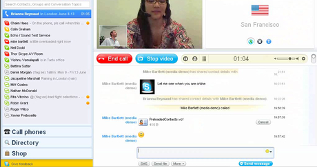 顯著的一個大改變是,軟件界面變成了全屏,而視頻窗口又占據(jù)了絕大部分版面。在視頻中還有“畫中畫”的功能,小的畫面可以任意移動?梢哉fskype從一部網(wǎng)絡電話,變成了一部網(wǎng)絡可視電話。或者,好像感覺是在視頻聊天室中一樣。