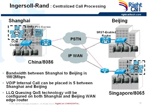 由于上?偛颗f有IP語音系統(tǒng)在實時運行,北京代表處搬遷后也將擯棄原有傳統(tǒng)語音系統(tǒng)而改用思科IP語音系統(tǒng),如果匆忙地進行網(wǎng)絡(luò)調(diào)整和切換必將面臨較大的風險,如何來對舊有語音系統(tǒng)進行無縫切換,對英格索蘭來說將是一個嚴峻的挑戰(zhàn)。