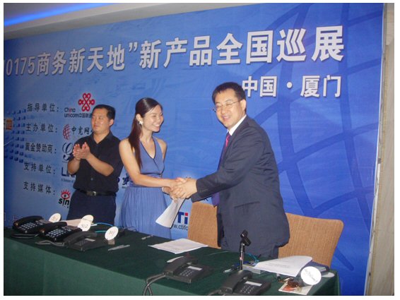 2007年6月27日,中寬網(wǎng)信”101756商務(wù)新天地”新產(chǎn)品全國巡展廈門站在廈門喜來登酒店勝利召開。會議的主旨是向中小企業(yè)及呼叫中心用戶推出個性化的通信增值服務(wù)方案,提高企業(yè)競爭力;同時為投資者提供投資小回報快的投資項目。此次會議得到了中國聯(lián)通的大力支持,廈門聯(lián)通數(shù)據(jù)部副總監(jiān)林長春先生表示中國聯(lián)通十分看好中國電信融合市場的巨大產(chǎn)業(yè)機(jī)會,有信心與中寬網(wǎng)信真誠合作,利用雙方各自平臺優(yōu)勢,深度合作,資源互補,共同參與激烈的電信市場競爭。