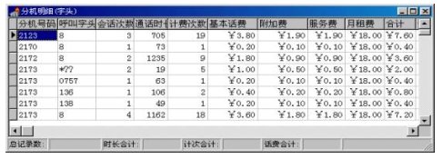 用戶可以撥打話費查詢電話號碼,話費查詢系統(tǒng)會提示用戶輸入查詢密碼,然后提示選擇余額查詢/時段查詢。用戶選擇時段查詢,查詢系統(tǒng)會提示用戶輸入查詢時段,然后自動將該時段內的話費統(tǒng)計出來,合成語音,報給用戶。時段話費查詢必須與LANBIRD計費/收費系統(tǒng)配合使用,利用網(wǎng)絡共享分機話費數(shù)據(jù)表,否則系統(tǒng)將得不到數(shù)據(jù)而無法工作。LANBIRD計費/收費系統(tǒng)可以與查詢繳系統(tǒng)無縫集成,不需任何人工操作。如果采用地三方的計費軟件,則須用手轉換,或用我們的自動轉換模塊,不過由于不同的計費系統(tǒng),話費存儲格式不同,自動轉換模塊需要專門開發(fā)。