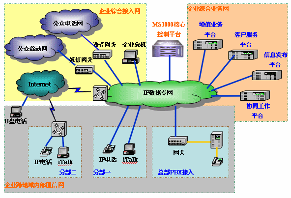 單一的電話通信方式已經遠遠不能滿足現(xiàn)代企業(yè)(包括行業(yè)、政府機關)在通信方面的需求,隨著IP網絡的不斷普及、新的通信技術的不斷發(fā)展,“多媒體協(xié)同通信”一個新的通信概念已經展現(xiàn)在我們的面前。我們需要跨地域的內部電話,我們需要廉價的IP長途,我們同樣需要通信服務平臺、信息發(fā)布平臺,我們還需要工作協(xié)同、信息共享!岸嗝襟w協(xié)同通信”就能滿足我們這些需要。