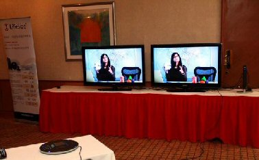 為了更好地展示新一代視頻系統(tǒng),LifeSize公司現(xiàn)場接通了美國總部的視頻會議畫面,畫面逼真流暢。LifeSize公司創(chuàng)始人、首席執(zhí)行官Craig