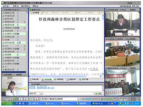 從2006年始林區(qū)引入視維視頻會(huì)議系統(tǒng)組建了森林防火視頻調(diào)度指揮會(huì)議系統(tǒng),會(huì)議系統(tǒng)全面開通之后,林業(yè)局已經(jīng)召開了多次的視頻會(huì)議,方便了會(huì)議精神和底層回報(bào)的上傳下達(dá)。這次除了主會(huì)場(chǎng)外,各縣林業(yè)局,各州屬林業(yè)局單位也通過登陸視維視頻會(huì)議的方式遠(yuǎn)程收看這次工作會(huì)議,認(rèn)真收聽收看許局長(zhǎng)做的工作報(bào)告。視維視頻會(huì)議系統(tǒng)為甘孜州林業(yè)局提供了穩(wěn)定的運(yùn)行平臺(tái),通過視頻會(huì)議,不僅實(shí)現(xiàn)日常的會(huì)議溝通,還可以實(shí)現(xiàn)領(lǐng)導(dǎo)與專家的會(huì)商,對(duì)預(yù)警信息、歷史情況、輔助評(píng)估結(jié)論等內(nèi)容進(jìn)行綜合評(píng)估,最終確定森林防火事件等級(jí)和應(yīng)對(duì)措施。