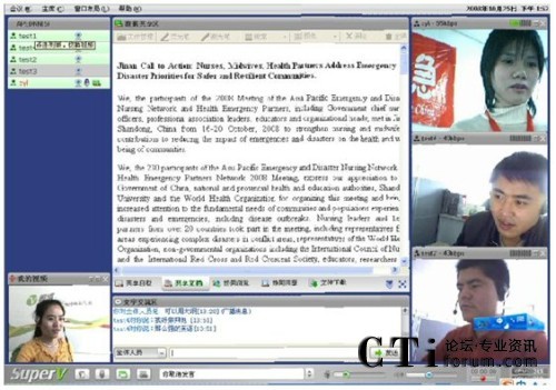 CTI論壇(ctiforum)10月16日消息:近日,世衛(wèi)組織用視維Super-V視頻會(huì)議軟件召開(kāi)亞太地區(qū)會(huì)議,討論第三屆APEDNN的各項(xiàng)議題。參加會(huì)議的成員主要有中國(guó)、菲律賓、新加坡、馬來(lái)西亞、緬甸、日本、泰國(guó)等幾十個(gè)國(guó)家和地區(qū)的代表。