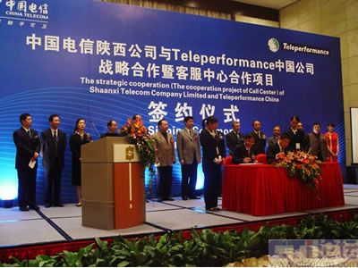 中國電信陜西公司與Teleperformance中國公司簽署了戰(zhàn)略合作暨客服中心合作項目協(xié)議