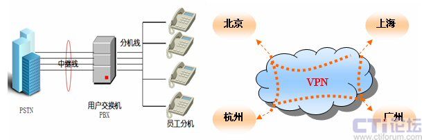 企業(yè)的傳統(tǒng)通信應(yīng)用,在語音電話方面,主要是透過傳統(tǒng)PSTN,通過中繼線連接企業(yè)交換機(jī)。數(shù)據(jù)應(yīng)用方面,分布在全國各個(gè)省市、自治區(qū)的分支機(jī)構(gòu)主要通過Internet,以E-mail方式聯(lián)絡(luò)。