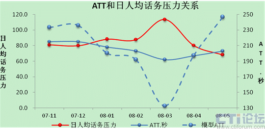筆者在《話務壓力模型及其應用》一文中量化分析了日人均話務壓力(通話強度)對ATT的量化影響,建立了一個話務壓力模型,闡述了ATT、質量、效率之間的辯證關系,并進一步說明了如何應用該模型評估ATT的合理波動范圍、進行人員招聘和排班的測算。