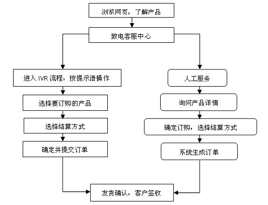 顧客的電話訂購主要有兩種方式:一種方式為在購物平臺400或800電話的IVR流程中根據(jù)提示語音來完成訂購過程;另一種方式為人工服務,客服人員幫助顧客完成訂購過程。