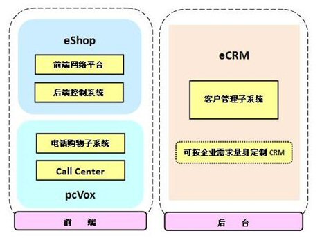 易宣科技eShop電子商務(wù)綜合系統(tǒng)是針對(duì)目前中小企業(yè)的電子商務(wù)需求而設(shè)計(jì)的,是一個(gè)綜合了多個(gè)功能模塊的企業(yè)電子商務(wù)平臺(tái)體系。它整合了易宣科技的eShop網(wǎng)絡(luò)購(gòu)物平臺(tái)系統(tǒng)、pcVox訊猛龍呼叫中心系統(tǒng)、及eCRM客戶管理系統(tǒng)。這三大組成模塊可以獨(dú)立應(yīng)用,也可以綜合運(yùn)用到中小企業(yè)的信息化建設(shè)中去,可以最大程度、在最短的時(shí)間內(nèi)、用最低的成本幫助企業(yè)建立起一套完備的電子商務(wù)綜合系統(tǒng),是現(xiàn)代社會(huì)中企業(yè)進(jìn)行網(wǎng)絡(luò)營(yíng)銷的利器。