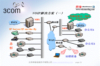 IP電話作為一種新技術(shù),確實令人振奮。它是對傳統(tǒng)電話交換技術(shù)的一次變革:不僅節(jié)省了企業(yè)長途通信成本,這還為遠程用戶提供對總部的數(shù)據(jù)網(wǎng)絡、通話系統(tǒng)和信息傳輸服務相同的接入能力,同時使運行維護方面變的更加快捷、簡便。3COM