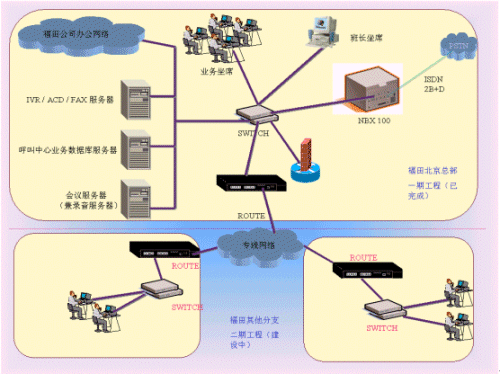 2. 隨著福田企業(yè)的發(fā)展,福田面臨的用戶群也日趨龐大。為了更好地為客戶服務(wù),同時(shí)也為了提高企業(yè)的整體形象,福田公司準(zhǔn)備建立客戶服務(wù)呼叫中心。首先在北京總部設(shè)立集中式的人工坐席,待各地分公司和總部之間的數(shù)據(jù)網(wǎng)絡(luò)建成后還要在各地分公司建立分布式的人工坐席。