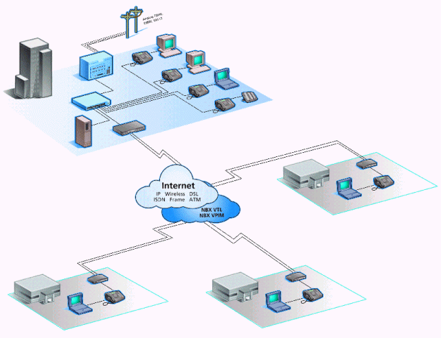 注:企業(yè)架設(shè)NBX通訊系統(tǒng)后,實(shí)現(xiàn)SOHO辦公只需要接入Internet架設(shè)VPN網(wǎng)絡(luò),員工可通過小區(qū)寬帶接入或ADSL接入即可實(shí)現(xiàn)內(nèi)部通訊就像在企業(yè)內(nèi)部辦公一樣通訊不受任何限制?蛻魜黼姇r(shí)只需撥打分機(jī)號(hào),無論員工在任何地點(diǎn)都可接聽來電。企業(yè)可以通過TCA(通訊助理)軟件給員工發(fā)送公告、組建電話會(huì)議、短信通知等應(yīng)用。