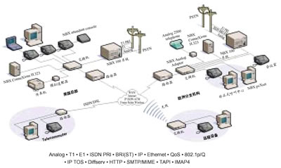 統(tǒng)一的分支機構(gòu)電話平臺,可以支持任何WAN技術(shù),包括ISDN、ATM、T1、E1、Frame Relay、xDSL和線纜調(diào)制解調(diào)器等。3Com