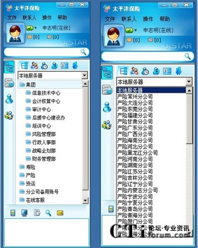 覆蓋全國的太平洋保險不僅在各省的城市有分公司,其分支機構(gòu)也遍布全國各個區(qū)縣。如何將各項政策快速有效地傳達給各個分支機構(gòu),成為保險公司信息總部一直探索的一條“路”。如何讓基層機構(gòu)也能參與日常的各項大大小小的會議,如何讓分布在全國的企業(yè)員工接受良好的培訓(xùn)?傳統(tǒng)的通訊手段似乎難以滿足需要。中國太平洋保險(集團)股份有限公司是全國性股份制商業(yè)保險公司,成立于1991年4月,總部設(shè)在上海。大部分分公司已經(jīng)自行使用很多即時通訊產(chǎn)品,但由于系統(tǒng)分散,各分公司管理能力存在差異,造成目前CPIC內(nèi)部即時通訊軟件使用相對比較混亂,部分員工還存在使用MSN、QQ的現(xiàn)象,這種現(xiàn)象已經(jīng)給公司安全生產(chǎn)帶來了一定的隱患。為此,太平洋保險集團的應(yīng)用理應(yīng)跳出即時通信的應(yīng)用,選擇一個擴展性、控制性、可管性強大的通信平臺。