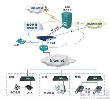 采用NGN+IP PBX的解決方案,不僅可以增強(qiáng)IP PBX組網(wǎng)和業(yè)務(wù)通信能力,還可以配合運(yùn)營商的NGN平臺開拓多種業(yè)務(wù)模式,成為NGN的有效擴(kuò)展,為運(yùn)營商和最終用戶提供雙贏的有利協(xié)助;窗簿W(wǎng)通就采用了Zed-3(捷思銳科技)的IP PBX進(jìn)行大客戶的語音接入。該IP PBX主要提供了用戶分機(jī)號碼分配功能,并為用戶提供語音池(IVR)、語音信箱、保密呼叫、NGN業(yè)務(wù)接入等多種應(yīng)用服務(wù)。
