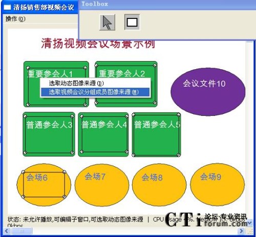 簡單的操作以后,一個生動的會議場面就出現(xiàn)在眼前。效果如圖一所示。軟件屏幕墻的使用讓每個參會人又重新找回了聚在了一個會議室里進行會議的感覺。 具體的操作請參見用戶手冊會議屏幕墻的使用。