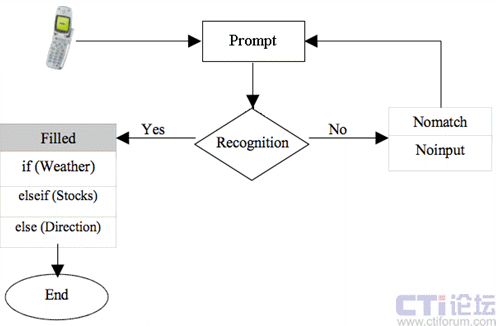VoiceXML解釋器組件( VoiceXML Browser)解釋和執(zhí)行VoiceXML腳本語言并把結(jié)果轉(zhuǎn)換成語音傳送給用戶(圖中的步驟4)。在執(zhí)行過程中,用戶可能需要通過語音和VoiceXML服務(wù)器進行交互,比如菜單選擇或者對查詢結(jié)果進行過濾等。VoiceXML服務(wù)器通過呼叫控制組件(CCXML