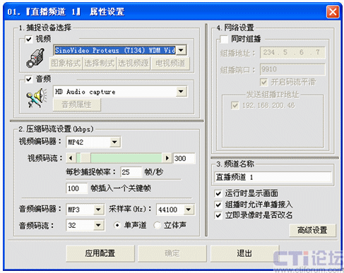 用鼠標右鍵點擊直播頻道管理下的某個頻道號,我這里選擇01:在彈出的右鍵菜單中選擇“直播頻道設(shè)置”或者點擊工具欄里的“頻道設(shè)置”圖標,出現(xiàn)下面的設(shè)置圖: