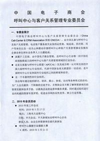中國電子商會呼叫中心與客戶關(guān)系管理專業(yè)委員會(China Call-Center & CRM Association簡稱CNCCA),由全國從事與呼叫中心及客戶關(guān)系管理,電話客戶服務(wù)相關(guān)業(yè)務(wù)的運營商、制造商、供應(yīng)商、用戶等單位以及一切關(guān)心和推動中國呼叫中心和客戶關(guān)系管理事業(yè)發(fā)展的企事業(yè)單位和社會各界人士自愿組成。
