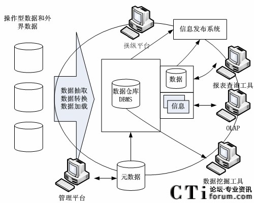 首先,數(shù)據(jù)倉庫是一種有效的管理技術(shù),將分布在網(wǎng)絡(luò)中不同站點的商業(yè)數(shù)據(jù)集成到一起,為決策者提供各種類型的、有效的數(shù)據(jù)分析,起到?jīng)Q策支持作用。它是一個壞境,而不是一件產(chǎn)品,它提供用戶用于決策支持的當前和歷史數(shù)據(jù),這些數(shù)據(jù)在傳統(tǒng)的操作型數(shù)據(jù)庫中很難或不能得到[22]