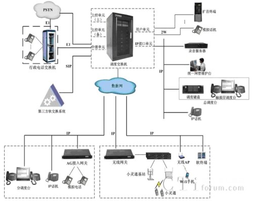 系統(tǒng)提供IP接口資源,可直接接入IP話機、軟電話等IP終端作為網(wǎng)內(nèi)分機用戶。網(wǎng)內(nèi)用戶可作為行政用戶,也可根據(jù)需要授權(quán)調(diào)度用戶。