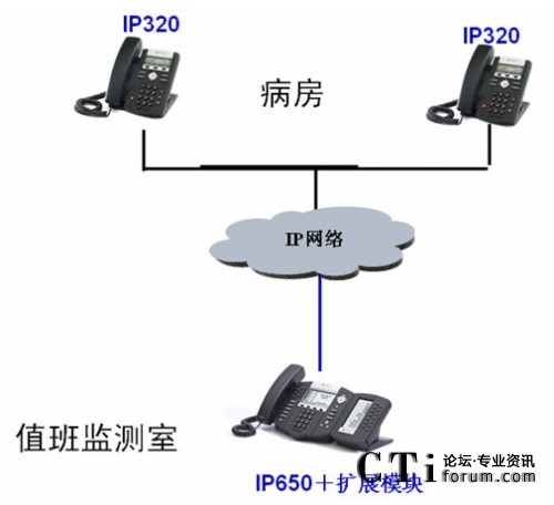 病房的IP550話(huà)機(jī)可以設(shè)置成摘機(jī)直通值班室的熱線(xiàn)模式,病房只要拿起聽(tīng)筒,電話(huà)自動(dòng)接通值班室,無(wú)需撥號(hào)。如果需要,病房同樣也可將IP550上設(shè)置成一鍵通話(huà)模式,定義值班室的快速通話(huà)按鍵,出現(xiàn)問(wèn)題時(shí)一鍵接通值班室。