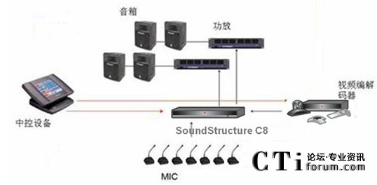 根據(jù)用戶的需求,結(jié)合用戶會(huì)議室現(xiàn)有的設(shè)備,我們選用寶利通具有獨(dú)特聲音處理技術(shù)的音頻處理平臺(tái)——SoundStructureC8。SoundStructureC8連接本地麥克風(fēng)和功放系統(tǒng),通過(guò)反饋聲抑制的功能來(lái)消除本地?cái)U(kuò)聲導(dǎo)致的嘯叫,保證會(huì)議室的聲音效果。C8聲音處理系統(tǒng)還可以和視頻會(huì)議以及電話會(huì)議一起使用,解決遠(yuǎn)程會(huì)議的回聲和噪聲問(wèn)題,改善會(huì)議質(zhì)量,提高會(huì)議效率。