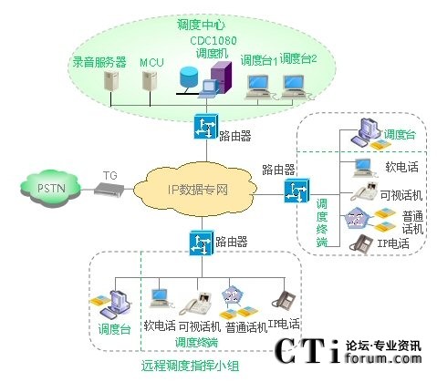 本系統(tǒng)為全IP的開放式體系架構(gòu),由IP調(diào)度機、調(diào)度臺和調(diào)度終端三部分構(gòu)成。