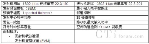 表4:802.11ac的發(fā)射機(jī)和接收機(jī)的測試要求