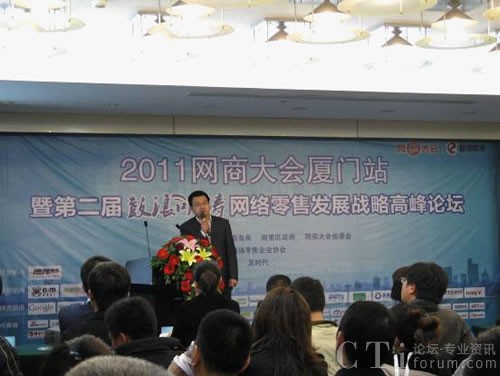 CTI論壇(ctiforum)5月30日消息(記者 楊佳林):2011網(wǎng)商大會(huì)廈門站暨鼓浪聽濤網(wǎng)絡(luò)零售發(fā)展戰(zhàn)略高峰論壇于3月25日-27日在廈門國(guó)際會(huì)展中心隆重舉行。北京訊鳥軟件有限公司副總裁潘濤應(yīng)邀參與交流,攜“云服務(wù)”帶給網(wǎng)商耳目一新的經(jīng)營(yíng)管理理念。