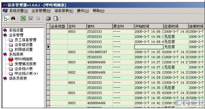 系統(tǒng)提供通話數(shù)據(jù)信息及統(tǒng)計,包括: 主被叫號碼 通話時長 呼出時長 等待時長 呼入呼出次數(shù) 話務(wù)員工作日報 |