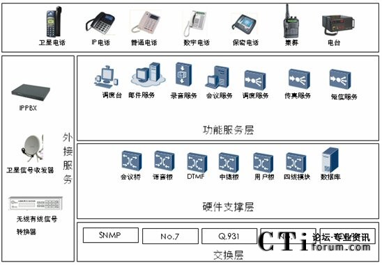 以HXD09-II應(yīng)急通訊調(diào)度系統(tǒng)為核心的應(yīng)急通信系統(tǒng)主要包括有線調(diào)度系統(tǒng)、數(shù)字錄音、多路傳真、短信收發(fā)系統(tǒng)、VOIP電話,具有無線、集群、短波、超短波、衛(wèi)星通訊、移動(dòng)應(yīng)急網(wǎng)接入能力,構(gòu)成與國家應(yīng)急平臺(tái)互聯(lián)互通、信息共享、統(tǒng)一高效、互為支撐的國家應(yīng)急平臺(tái)體系。
