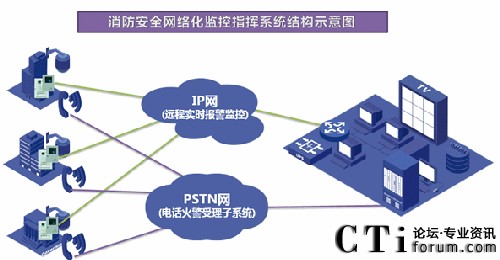 消防網(wǎng)絡(luò)傳輸設(shè)備通過(guò)以太網(wǎng)(TCP),電話線(PSTN),無(wú)線(GPRS、CDMA)將火災(zāi)報(bào)警主機(jī)接收到的火警及運(yùn)行信息上傳的鋼廠消防安全監(jiān)控指揮中心。