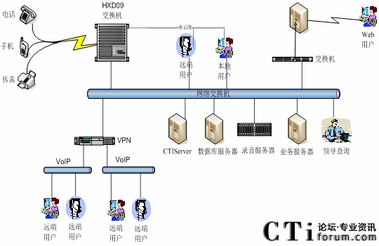 如前所述,本系統(tǒng)提供基于hxd09可編程智能語音交換機(jī)的語音接入方式,支持1號和7號信令線路的接入。對于企業(yè)客戶服務(wù)中心系統(tǒng),選用行價比極高的hxd09交換機(jī)作為語音接入設(shè)備,保障系統(tǒng)的高可靠性和穩(wěn)定性;同時具有良好的系統(tǒng)性能;以確保合理的、較少的投入,獲取最佳的配置,滿足不同企業(yè)的需求。