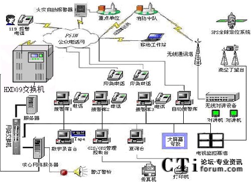 隨著國民經(jīng)濟(jì)的不斷發(fā)展,我國城市的現(xiàn)代化進(jìn)程在不斷加快,因而對消防部隊的反應(yīng)速度、調(diào)度指揮、現(xiàn)場搶險救災(zāi)等綜合能力要求越來越高.現(xiàn)代化的消防通信指揮系統(tǒng)是受理火災(zāi)報警、實施通訊調(diào)度指揮、執(zhí)行滅火救災(zāi)工作的必不可少的技術(shù)裝備,它對于保護(hù)國家和人民生命財產(chǎn)的安全、保障經(jīng)濟(jì)建設(shè)的順利發(fā)展、維護(hù)社會的穩(wěn)定有著十分重要的意義.,恒訊達(dá)公司的(HXD09)交換機(jī)切合實際,綜合應(yīng)用現(xiàn)代通信技術(shù)、計算機(jī)網(wǎng)絡(luò)技術(shù)、結(jié)合地理信息技術(shù)、VOIP、虛擬現(xiàn)實技術(shù),開發(fā)了網(wǎng)絡(luò)化、智能化、可視化的、高度模塊化、以技術(shù)先進(jìn)、組網(wǎng)靈活、整體性強(qiáng)、實時性高、安全可靠、實用高效為特點的可編程智能語音交換機(jī),HXD09交換機(jī)接口易開放性,結(jié)合圖形化的流程生成器和二次開發(fā)接口,為119系統(tǒng)平臺開發(fā)商提供強(qiáng)大的平臺保證。