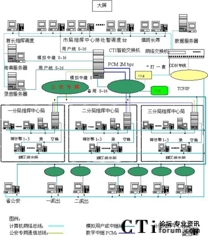 指揮中心對下屬各派出所、消防大隊、交警大隊的指揮調(diào)度分有線、無線等多種途徑,呼叫方式可以是單呼、組呼、群呼、會議(含多方通話)等多種方式。發(fā)布指令和信息可通過計算機網(wǎng)絡(luò)發(fā)送到對方的遠程計算機終端或打印機上,也可以通過有線傳真系統(tǒng)發(fā)送到對方的傳真機或計算機上。