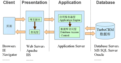 為了滿足移動辦公和分布式管理的需求,CRM系統(tǒng)將更多采用基于Browser-Server架構(gòu)的多層結(jié)構(gòu)。B/S結(jié)構(gòu)的特點(diǎn)是在客戶端使用標(biāo)準(zhǔn)的Web頁面瀏覽器(如Internet Explorer等),不需安裝特殊的應(yīng)用程序,減少了升級和維護(hù)的難度;所有的業(yè)務(wù)數(shù)據(jù)都保存在Server端,確保了數(shù)據(jù)的安全;在通訊方面,由于使用標(biāo)準(zhǔn)的HTTP協(xié)議,使得系統(tǒng)可以輕松的實(shí)現(xiàn)移動辦公和分布式管理。另外為了系統(tǒng)功能的可擴(kuò)展性,應(yīng)該采用將數(shù)據(jù)庫、應(yīng)用層及表現(xiàn)層分離的多層結(jié)構(gòu)。獨(dú)立的數(shù)據(jù)庫層便于支持多種數(shù)據(jù)庫系統(tǒng),將實(shí)現(xiàn)企業(yè)邏輯的應(yīng)用層獨(dú)立使業(yè)務(wù)邏輯的更新和擴(kuò)展更為方便,而當(dāng)需要支持手機(jī)、PDA等新的客戶端設(shè)備時只要對表現(xiàn)層進(jìn)行擴(kuò)充就可以實(shí)現(xiàn)。同時,這種多層結(jié)構(gòu)也可以采用負(fù)載均衡與集群等技術(shù)實(shí)現(xiàn)系統(tǒng)的高可用性和性能的平滑擴(kuò)展。