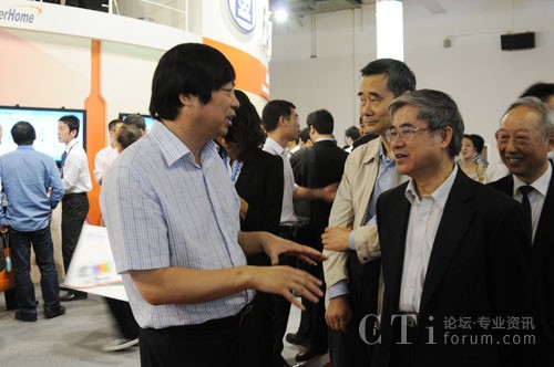 中國工程院副院長鄔賀銓在通信展參觀烽火科技展臺(tái)
