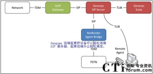 呼叫中心的蓬勃發(fā)展帶動(dòng)了呼叫中心廠家投入巨資開發(fā)呼叫中心最核心的功能,例如拓展呼叫中心的接入,座席的管理,洗號(hào)系統(tǒng)。除了支持Asterisk,F(xiàn)reeswitch平臺(tái)的高并發(fā)A116 16E1做為高并發(fā)呼叫中心以外,Sangoma早在2004 年就開始和世界知名呼叫中心廠家Genesys 合作,開發(fā)了呼叫中心的洗號(hào)系統(tǒng),遠(yuǎn)端座席管理,PSTN 接入等強(qiáng)大的工具,從而提高了大型呼叫中心的接通率和座席管理的靈活性。Sangoma 通過(guò)genesys 兼容性測(cè)試,完全兼容Genesys 呼叫中心平臺(tái)。NetBorder 系統(tǒng)架構(gòu)如下: