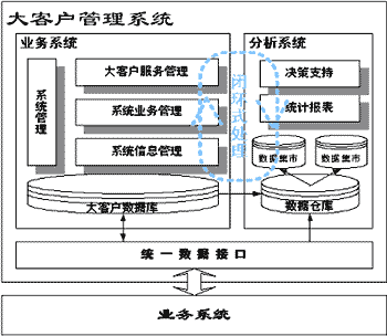 HollyAnalyzer是建立在大客戶信息平臺基礎上的針對業(yè)務主題、面向決策支持的系統(tǒng)。將數據倉庫的相關技術引入,利用數據分析系統(tǒng),從基于客戶數據及企業(yè)業(yè)務活動的歷史記錄中提煉出有用的信息產生標準的查詢報告,進行大客戶分析和市場營銷的輔助決策支持。分析主題主要針對客戶、競爭對手和營業(yè)及收入進行分析,這些數據是企業(yè)非常關心的信息,有助于企業(yè)借助積累的歷史數據,對其業(yè)務運營狀況及營銷活動成效做出正確的評價,了解客戶行為及其趨向。
