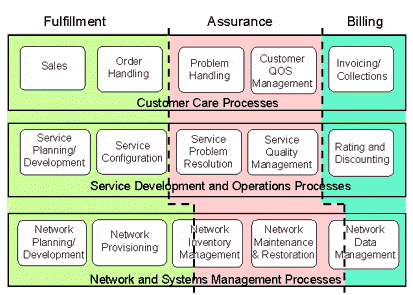 在TMF的模型中,從功能上來看,OSS主要包括三大功能:業(yè)務開通(Service Fulfillment);業(yè)務保障(Service Assurance);計費,又稱業(yè)務計量(Service